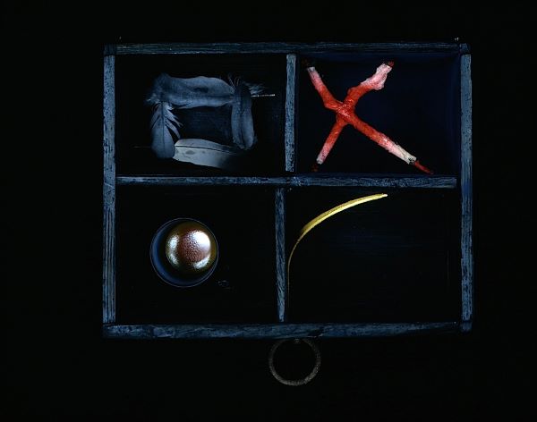 ‘Of course I understood Joyce’s use of “epiphany”, and its meaning in the context of Dubliners, with particular regard for, “The soul of the commonest object, the structure of which is so adjusted, seems to us radiant. The object achieves its epiphany.”’ It’s a phrase that conveys the essence of what we see in Mills’ work where found objects are integral, recalling lived experiences and therefore “wiring” his abstract art to reality. In the Ember Glance installation there were twenty-four wooden boxes evoking the artist’s own memories, with items such as a feather, honeycomb, a fragment of bone, a compass…