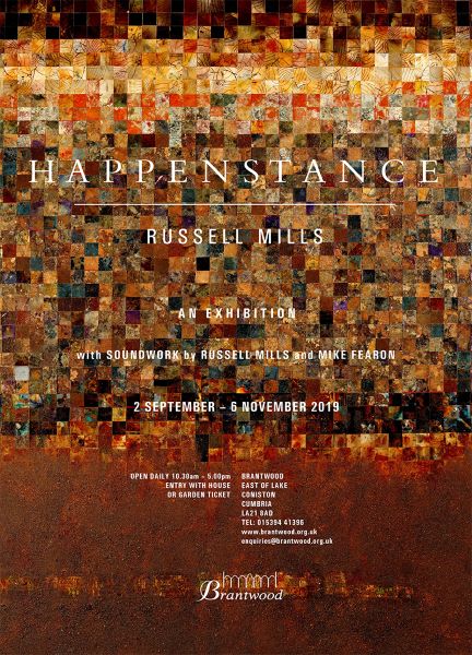 In October 2019 I travelled to the Lake District in the North West of England, my first visit for some years. Accommodation was a rented cottage overlooking lake Coniston whose waters reflected the tones and activity of the overarching skies; one moment aggravated by the falling rain, in another glinting back transient sunlight from whence it came. On the far shore stood a grand country house, at dusk the golden lights from its windows calling out invitingly when not obscured by autumn mist. This is Brantwood, former home of John Ruskin and the catalyst for the visit, for a few weeks home to Russell Mills’ installation, Happenstance.