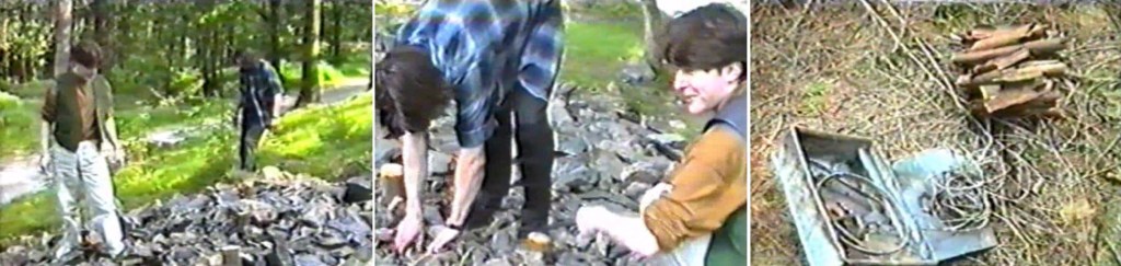 So what exactly were they doing as they sift through rubble in a Lake District pine forest? Russell took me back to another project to explain. ‘In 1987 I was commissioned by what was then Northern Arts (the regional Arts Council) to produce a piece in homage to Kurt Schwitters to mark the centenary of his birth. I invited my friend, artist and fellow Schwitters aficionado Ian Walton to work with me. After a couple of site visits to view possible locations and discuss the project with the then Director of Grizedale, Bill Grant, we came up and spent a few weeks making the piece…Following Schwitters’ lead and adhering to the ethos of Grizedale’s sculpture policy at the time, we used only found materials scoured from the forest. Nothing was imported from outside Grizedale.