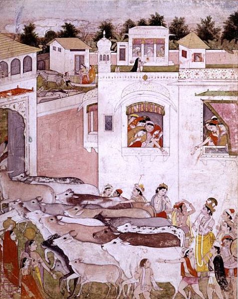 The opening phrase has often been misheard as ‘coldest hour’ but the ‘cow-dust’ hour in India refers to dusk, when cattle that had been sent to nearby fields for daylight grazing returned to the village for shelter and safety. As the animals move their hooves kick up clouds of red dust; the Hindi word for twilight is godhali, literally cow (‘go’) dust (‘dhalli’). It marks the transition from day to evening, a sacred time when Lord Krishna the cowherd brought his own animals safely home. In India it is regarded as an auspicious hour for engagements and weddings, but it’s also the time when mothers call their children back to the home to avoid an encounter with evil spirits.