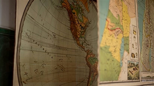 Photographs taken in the Schoolhouse by David Sylvian, with maps used in the recording, including (above) The Land of the Bible