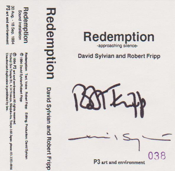 Produced by David Sylvian. From Redemption by David Sylvian and Robert Fripp, limited edition cassette, P3 art and environment, 1994
