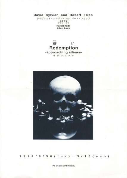 Sylvian & Fripp’s presentation would open just over two years later on 30 August 1994, the pair having in the meantime passed through Tokyo once again on The Road to Graceland tour in 1993. Their work at P3 was the fifth in a series of what the gallery styled ‘sound installations’. The previous instalment had been John Cage’s Writing through the Essay – On the Duty of Civil Disobedience which opened months after Cage’s death but with the benefit of direction given by the composer before his passing.