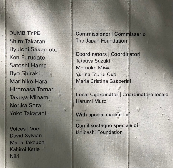 The 59th edition of the International Art Exhibition in Venice was scheduled to take place in 2021 and in March 2020 the Japan Foundation, commissioner and organiser of the Japan Pavilion, announced that the exhibition contents would not this time be determined through a competition of plans submitted by nominated curators, but rather the artist responsible for Japan’s contribution had been directly selected as Dumb Type.