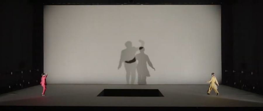 The global health crisis meant that 2020 was never performed before a live audience, instead it was broadcast online six months after its intended premiere. By then, some aspects of the group’s creation seemed to take on a new significance. Shiro Takatani, a founder member of Dumb Type, explains: ‘The most defining feature of the design of 2020 is that the place that is normally used the most in a performance – the centre of the stage – has a large hole in it, and thus is unusable. Although it was a big challenge for us to arrive at this decision, I liked the idea: the dancers are on either side of the hole, and are therefore dancing far apart from one another. However, their shadows overlap on the screen behind them: these shadows shake hands and hug, even though the physical bodies of the performers are far apart. And I feel that that this seems like some sort of metaphor of our attempts to communicate in a pandemic world.