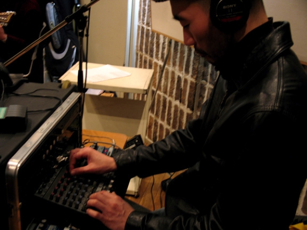 Toshimaru Nakamura and his no-input mixing board, recording for Manafon, Japan, 2006, from the gallery of photos from the session by David Sylvian & Yuka Fujii at davidsylvian.com