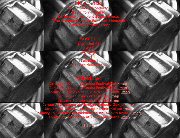 An article was posted on Ryuichi Sakamoto’s official website under the heading: ‘Sakamoto has successfully ended his tour of the world.’ The text was a short message from the artist himself: