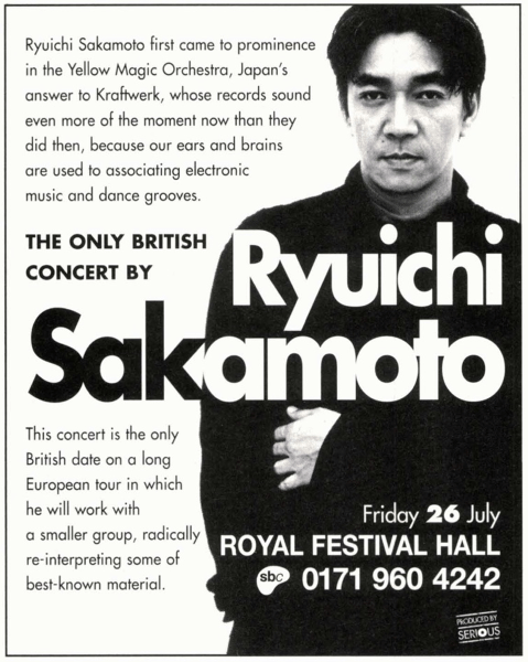 All quotes by Ryuichi Sakamoto are from interviews conducted in 1998 unless otherwise indicated. A key source for this article is Paul Tingen’s interview with Ryuichi for Sound on Sound magazine in April 1998. Full sources and acknowledgements for this article can be found here.