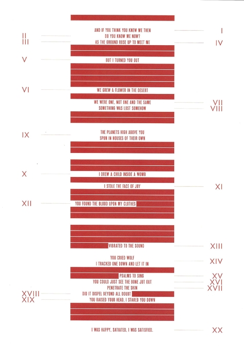 Sylvian’s lyric recounts trauma in specific detail, physical harm (probably self-harm), the compassion of another person, and yet that pervading gulf which now prevails between them.